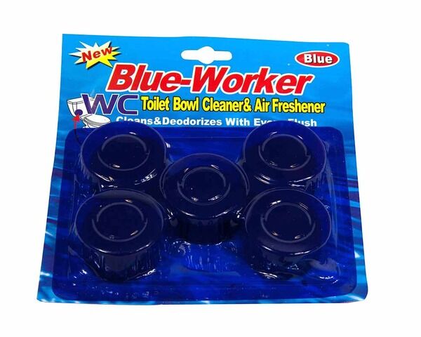 Keeping toilets clean, hygienic and germ free is a must for any home or business environment. Our Blue Worker Toilet Bowl cleaning pack contains 5 tablets that are specially formulated to get rid of germs in your toilet bowl. They also have added value, in that they dispense a lovely pleasant fragrance into the air.