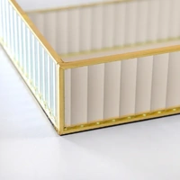 The trays are made of metal that is finished in a stunning gold colour. The base is a shiny mirror that sparkles as it reflects the light. The sides are made of acrylic. Each tray is 30cm x 20cm x 5cm. They are perfect to hold makeup or jewellery. They can be used in a bathroom to hold soaps, bath salt sachets or cotton balls. This beautiful tray will add the perfect finishing touch to a bedroom, hide-away, bathroom or guest room in your home.