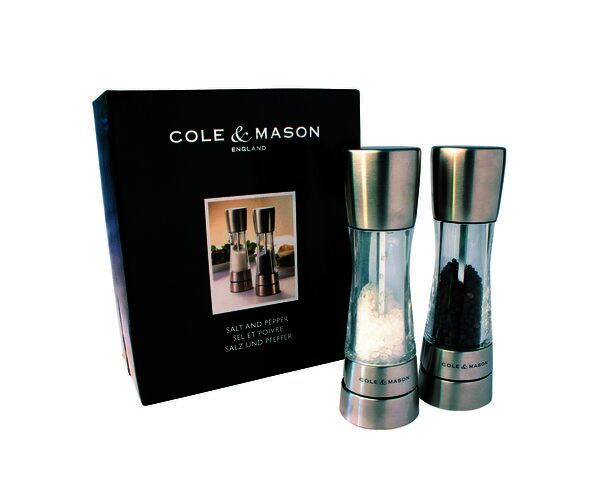 This beautifully boxed Cole & Mason Salt and Pepper Mill Derwent Gift Set is not just attractive but offers high precision grinding. For large crystals for halloumi or wedges, to a fine sprinkling on chicken chasseur, or pepper you can crunch on to a dusting on your avocado salad, the adjustable grind will provide. Ultra-clear acrylic allows easy identification of the included seasoning. The mechanism is chosen for its suitability to pepper or salt - carbon steel to strip peppercorns bringing out exceptional flavour, and ceramic for sensational salt. The lifetime guarantee of the mechanism reflects the confidence Cole and Mason place on their products.