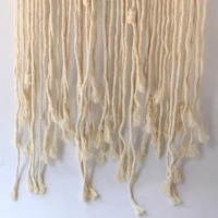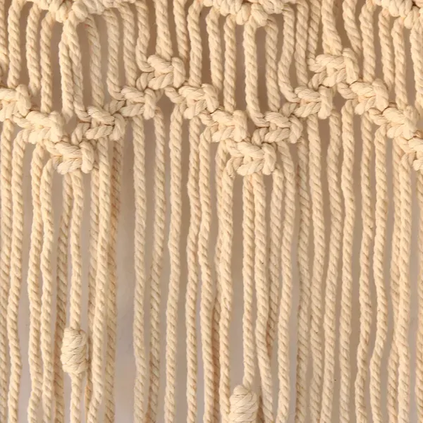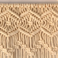 The top section of the macramé showcases a beautifully tight knotted design forming diamond shapes. Underneath that is a pattern of zigzag lines. The strings then drop free-flowing into long dangling tassels forming a curtain fringe. This stunning wall hanging is mounted on a rod and comes with a hanging cord, wall mounts and an S-shaped hanger. Use it to create a vintage ambience in a study or bedroom. It will look also look great hanging in your entrance way or in a den.